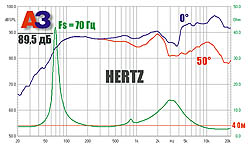 Параметры Тиля — Смолла мидбасовой головки Fs, Гц Vas, л Qts 69,7 7,56 0,479