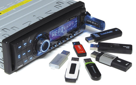 Да, это правда, одинаковы не все USB-носители. В этом не трудно убедиться, если перебрать около десятка вместе с уже знакомыми нам по предыдущим тестам головными устройствами. В роли референсного образчика была взята модель автомагнитолы с USB Pioneer F900BT. Еще испытали новенькую модель автомагнитолы Clarion NX700E, какую-то модель автомагниолы Zenec (она должна заменить штатный ГУ в Volkswagen) и другие, помещенные в итоговую таблицу.