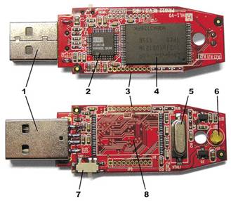 Снаружи она довольно проста. Состоит USB из контроллера, который управляет обменом с компьютером, кварцевый генератор, синхронизирующий работу устройства, и микросхема NAND.