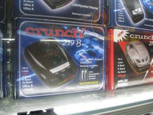 Среди множества различных моделей, хочется выделить антирадар Crunch 219B. Он относится к современной и абсолютно новейшей серии Блэк радар-детекторов фирмы Crunch. Прибор является лазерным радаром-детектором, который способен обнаруживать все милицейские радары, а также те радары, которые работают в импульсных режимах Ультра-Х и Ультра-К и в широком лазерном диапазоне. Помимо этого, антирадар Crunch 219B способен принимать и обнаруживать сигналы ВиДжи -2 класса пушек, которые занимаются обнаружением радар-детекторов. Антирадар Crunch 219B способен выдавать как визуальные, так и звуковые предупреждающие сигналы о присутствии радио и лазерных сигналов, а также сигналов ВиДжи - 2 класса в радиусе триста шестьдесяти градусов. Основной особенностью радар-детектора Crunch 219B является возможность работы от двух аккумуляторов. Это будет служить дополнительной гарантией для его бесперебойной работы.
