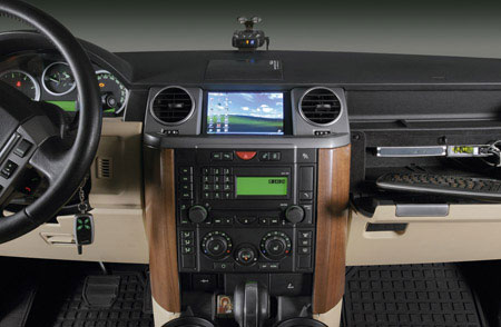 В бардачке располагаются другие компьютерные средства общения: компактная клавиатура с трекболом, съемный хард-диск, DVD-транспорт и множество USB-портов.