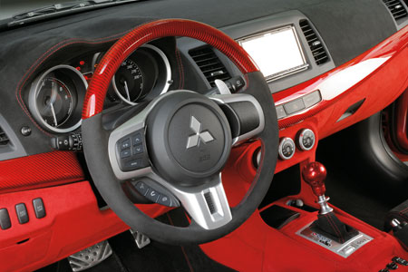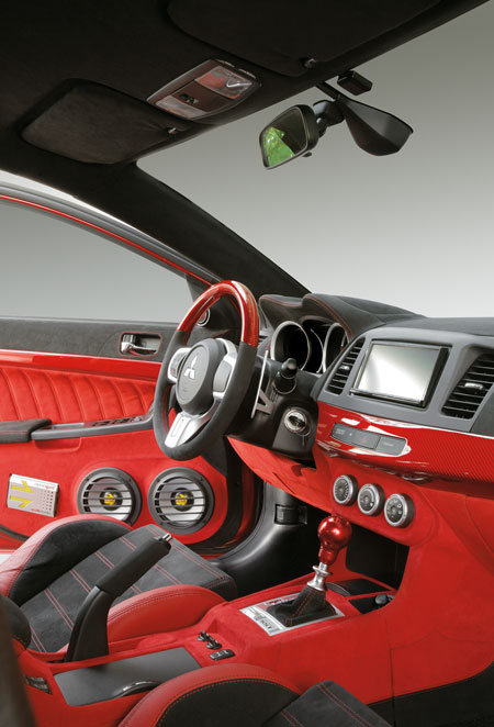 Это и было отражено в аэрографии, по нашему общему мнению одной из самых креативных и изящных, из попадавших в наши репортажи. Скоростной напор воздуха срывает с авто краску, обнажая истинную сущность Evolution: боевой самолёт, включая все атрибуты, вплоть до бортового номера. Последующий этап деятельности тоже окончен. Теперь пора приняться за оборудование кокпита и установку авионики и автомагнитолы.