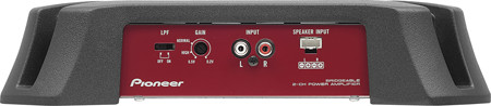 Предшествующий вариант автомагнитолы, GM-3400T, принимал участие в нашем тестировании год назад. В прежней модели незначительно поменялся дизайн, но все функции по нашему мнению остались в духе фирменных традиций. Блестящий чёрный корпус с вставками по бокам имеют цвет зрелой вишни, тем самым выделяется: качественная вещь, диагностическое бортовое устройство для не простых условий эксплуатации. Широкие (почти 1,4 см) силовые зажимы с неизбежным меднением плюсового терминала, показывают заботу о труде инсталляторов и неизменности собственным традициям. Выходные зажимы так же смотрятся основательно, хоть их ширина не имеет отличия от «стандартов» (8,5 мм). Относительно маленький номинал предохранителя — 25 А. Линейных выходов не имеется, тем ни менее имеются входы высокого уровня. Лидирующий в мире изготовитель, который производит автомобильные усилители Pioneer, по тенденции извлекает выгоду из фильтров, мы понимаем эти причины, но тем не менее их не одобряем. В автомобильные усилители можно включить только фильтр НЧ, и тот на установленную частоту 80000 кГц. Любопытно, что когда фильтр выключен, усилитель меняется на режим моно, автозвук от двух входов плюсуется. Так же по традиции нет басового регулятора.
