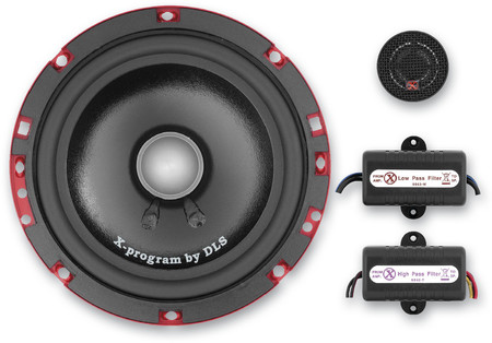 Диффузор является традиционным для акустики DLS/X-Program, с лаковым водостойким покрытием из целлюлозы. В состав целлюлозы в этом случае вводится волокнистая минеральная добавка, у которой состав еще не раскрыт изготовителем. По нынешней моде центральный колпачок обладает заостренной формой, имитируя в какой-то степени неподвижную «пулю». Основательно заглушенная корзина. При внешнем магнитном диаметре 81 миллиметр в системе магнита предусматривается осевое 10-миллиметровое отверстие. На корпусном ободе имеется жесткое средневысокое уплотнительное кольцо. В комплекте отсутствуют защитные решетки. К звуковой катушке провода проложены по 1-му методу – инженерами DLS всегда отдавалось предпочтение именно ему. Майларовую мембрану пищалки относят к виду «сбалансированный купол», весь диаметр 25 миллиметр, купол размером 17 миллиметров. Перед мембраной устанавливается апертурный диск. Корпусом твитера допускается его монтаж на поверхность, а для осевого 30-градусного разворота предназначена специальная подставка. Также монтаж фильтров осуществляется в разрыв проводов, каждый фильтр также размещается в свой корпус. Здесь в общей сложности две катушки, имеющие ферритовые сердечники и полиэфирный конденсатор, не трудно догадаться, что формула будет видом – I+II. В самой простой форме выполнен аттенюатор при замкнутых проводах на выходе ВЧ-фильтра, High-уровень, разомкнуты –Low.
