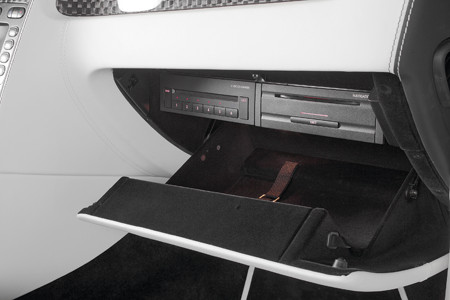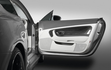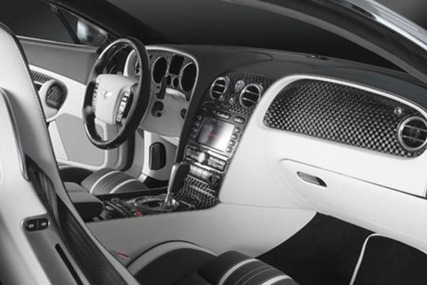 Параллельно осуществлялась и отделка салона. Панели крупного фактурного плетения выполнены из углепластика, включая и отделку руля, геометрия которого была оптимизирована для нового владельца. Оригинальная британская отделка салона Bentley выполняется из дерева, но сложно не согласиться, что дерево, отлично подходящее для солидного и неспешного правительственного лимузина, в спортивном купе будет несколько не к месту. Салон же был отделан светлой кожей – и это смотрится даже более стильно, чем в автомобилях не только Джеймса Бонда, но и самой Королевы – её автомобиль отделан хоть и исключительно дорогой и высококлассной, но слишком чопорной серой кожей.