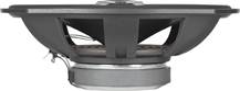 В данном случае автоакустика имеет ширину подвеса 12,5 мм, что больше на 0,5 мм стандартного значения. Корпус отливается из пластика и имеет средний уровень заглушенности, что не мешает добиться подавленности низкочастотных резонансов. У магнита обычные габариты — 100*15мм, в то время как катушка выросла до 32 мм. Уплотнительное кольцо низкое и являет собой компонент корпусной конструкции. При возникшей необходимости, может быть добавлено высокое пластиковое кольцо, входящее в комплектацию. Стоит отметить отсутствие кольца поглощения звука. Провода прокладываются к твитерупо второму варианту. Автомобильные колонки Alpine 3-полосная, но вполне может считаться коаксиальной. Главный твитер располагается по оси мидбаса, тогда как второй «супер» пьезокерамический, находит свое расположение сбоку, говоря об его второстепенности. Диаметр мягкого купола главной пищалки 27 мм. Сам купол нагружается на небольшой рупор. Конденсатор фильтрации фиксируется клеем на мидбасовом корпусе.