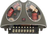 В нашем случае Virtus предстала в самом представительном виде в состав акустики вошли: трёхполосный комплект с низкочастотным динамиком в шесть дюймов, вдобавок к этому, пищалка, среднечастотник и кроссовер марки MX300. Внешне оказались знакомы глазу только компонент Morel - среднечастотник, а остальные вышеперечисленные оказались новы в исполнении и не похожи ни на один элемент Morel.