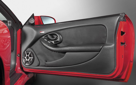 Усилитель на четыре канала Polk Audio PA660 (его в наших тестах пока не было, но скоро уже будет) работает на фронтальную акустику (Polk Audio MM 6501). Этот автозвук у нас тестировался и были особо выделены две взаимосвязанные особенности. Во-первых, внутренне сопротивление небольшое (порядка 2 Ом), что повышает отдаваемую мощность. При этом сопротивление усилителя на выходе должно быть, примерно, на порядок меньше сопротивления звуковых катушек. Здесь это условие выполняется на заводском уровне. Во-вторых, звуковая катушка мидбаса имеет увеличенный диаметр, благодаря чему повышенная мощность преобразуется в звук с очень высоким коэффициентом полезного действия и, практически, без всяких искажений. Установка фронтальной акустики общепринятая: в треугольниках зеркал – пищалки, в дверях – мидбасовые динамики.