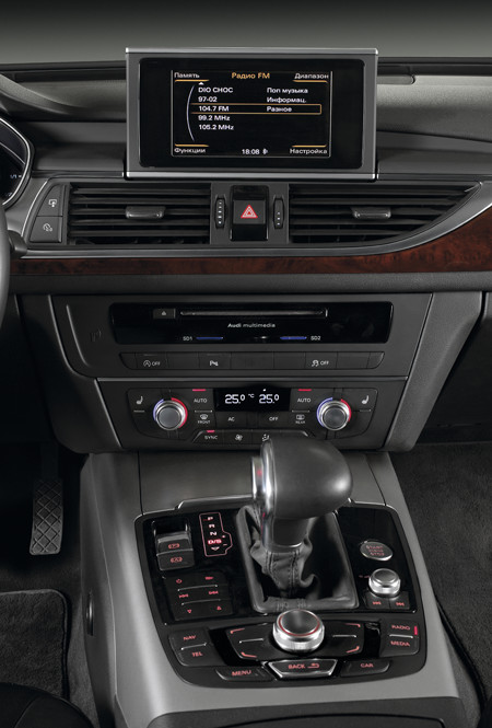 Задание вполне ординарное: High End без фанатичного почитания религии. В обязательном порядке необходимо присутствие поддержки дисковых накопителей, а также сохранение опций стандартного ГУ. Финальное пожелание обуславливается техническими параметрами самого кувшина. Прежде всего, не стоит забывать, что речь идет относительно Audi A6, где отказ от штанного основного устройства нежелателен, да и в своей основе, фактически неприемлем. В автомобилях подобного класса, в ГУ содержится целый компьютер, который скромно представляется CD-ресивером. Кроме простой музыки, в нем имеется громадное количество функций автомобиля. Говоря короче — мина извлечению не подлежит, саперов подпускать нельзя и постараться уберечь личный состав. Прецедентов имеется громадное множество, при которых данная часть системы оставалась независимой и работоспособной. Оставляли даже собственные динамики, которые воспроизводят служебную информацию — подсказки навигации или сигналы парктроника. В таких ситуациях высококачественная аудиосистема ставится «сверху» штатной. В данном случае было принято решение пойти по-другому пути — так как опции радиоприемника остались возложенными на штатное устройство, его инсталлировали с общей системой в качестве альтернативного варианта.