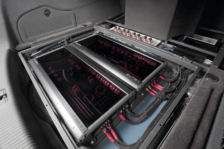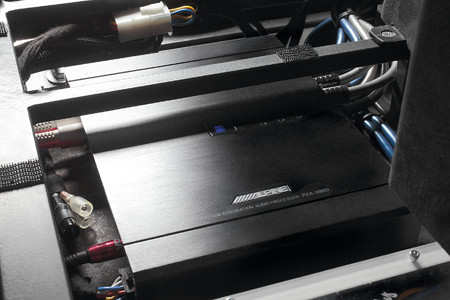 Драйвер, третий усилитель и профессор находятся в неподвижной области рамы, непосредственно под самим сабвуфером. В подвальной части имеется разводка всех коммуникаций.