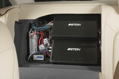 Все 3 усилителя размещаются около одной из секций спинки на заднем сиденье откидном. В том же месте и блок для того, чтобы осуществлять оперативное управление процессором.