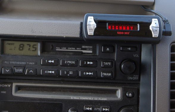 Однако при всей необходимости данного набора у меня возникло желание убрать из него что-нибудь. Друзья, узнав это, подарили мне антирадар Sho-Me R-500. Его неоспоримым и главным достоинством является то, что он изготовлен по разнесенной схеме. Хотя ее придумали для стран, где антирадары запрещены, она удобна. Небольшой индикатор устанавливается в автомобильный салон, а приемник с большой рупорной антенной располагается под капотом. Между индикатором и главным блоком беспроводная связь, на частоте 433 МГц.
