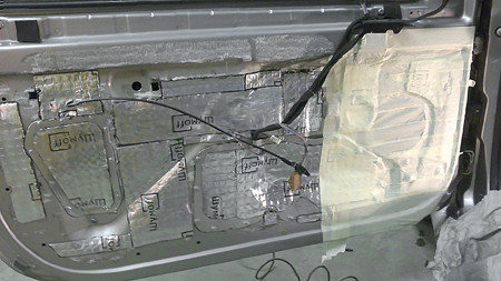 После разборки двери, выяснилось, что не будет легко. Внутренняя дверная карта в отличие от «Фокуса» здесь не съемная, а единая, имеющая технологические отверстия. Однако проблема заключалась в том, что для облегчения все сделали из тончайшего металла, и все ходило ходуном.