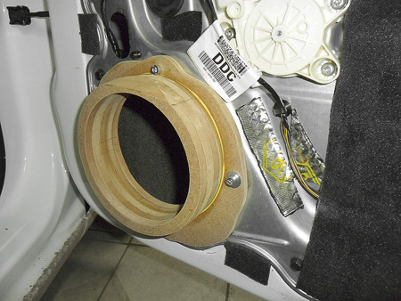 Были внесены некоторые коррективы в общее оформление подиумов, которые были применены мной для расположения фронтальных акустических устройств. В некоторой степени мне удалось частично приблизиться к основным аспектам заводского оборудования, но при этом характеристики данного устройства более четкие. Обшивку с дверной конструкции пришлось частично убрать. Пришлось немного поколдовать и с головками. Их пришлось немного усовершенствовать.