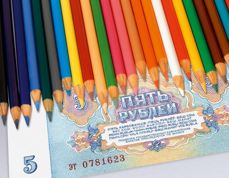 Импортная отличалась от школьной (за исключением качества, напрямую вытекающего из импортной природы) количеством цветов и размером коробочки. Было 5 штук только синих различной интенсивности, при помощи них при наличии аккуратности, терпения и незатертой пятирублевой купюры можно было почти правдоподобно рисовать такую купюру. О тех добрых старых временах стабильности и застоя вспомнилось во время оформления графики к данному тестированию.