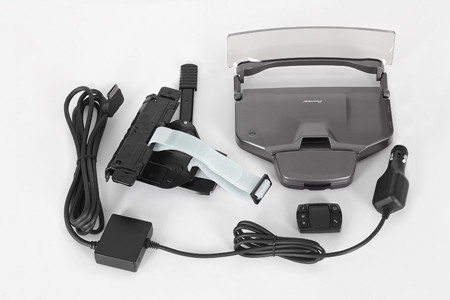 Pioneer были перенесены воинственные технологии на борт мирных авто, создавая вот такой прибор. Он имеет строго 1 опцию – подготовка картинок, выводимых системой навигации на экраны смартфоном, к показыванию на «лобовых стеклах» и их показ. Кавычки потому что формирование картинок происходит в воображаемой плоскости, находящейся далековато от того, чтобы глазам не пришлось перефокусироваться с близи на дальность и наоборот.