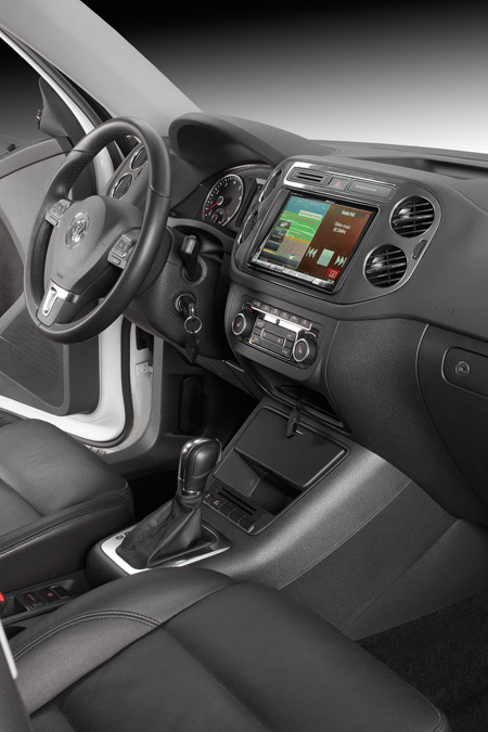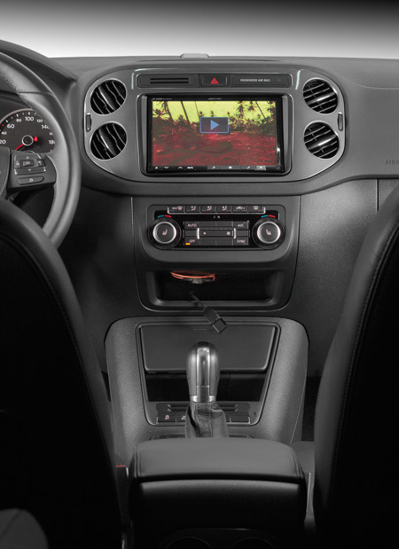 Время для реализации реформаторской концепции. Сейчас задачу интеграции без швов в машину «головки» с экраном, который исключает возможность интеграции, можно решить содействием компании-производителя прибора. Для VW Tiguan разработали комплект для установки KIT-SVWTV, который включает в себе кроме элементом механической адаптации (кронштейны и рамки), детали электрической адаптации. В итоге к «приемнику» уходят все опции стандартного ГУ, однако добавляются и новейшие возможности. Управлять можно «с руля», выведение ГУ-информации на стандартный дисплей на панели приборов, поддерживает стандартные патронники. Здесь есть камеры заднего вида, на экране которых имеются метки. А имеющийся в комплекте антенный адаптер смог объединить и усилить сигналы 2-х стандартных антенн, в итоге в сравнении со стандартными качество приема улучшено.