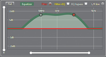 Смотрим: возможно, изменение масштабов по оси уровней и частот для подробного показа зоны работы, в настоящий момент – 200 Гц-5кГц. Ввод коррекции на 2-х частотах – 2,5 кГц и 500 Гц.