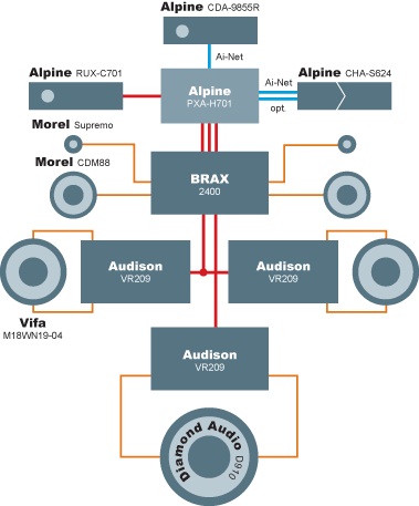 Так же представлена автоакустика Morel и усилители автомобильные Audison.Информация взята: http://auto-magnitola.ru Отзывы покупателей про статью "Подключение автомагнитолы Alpine, усилителя автомобильного Audison и автоакустики Morel в Ford Focus"