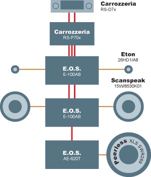 усилители автомобильные E.O.S., автоакустику Eton.Информация взята: http://auto-magnitola.ru Отзывы покупателей про статью "Подключение автомагнитолы Pioneer Carrozzeria, усилителя автомобильного E.O.S., автоакустики Eton и сабвуфера автомобильного Peerless в Accent-Audio"