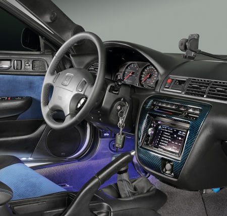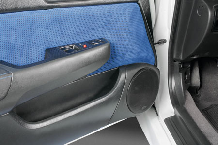 Как только фронт был сформирован, можно было переходить непосредственно к багажному отсеку. Здесь были сосредоточены и сабы, и соответствующие усилки. После того как спецпроект был разобран по элементам, он стал более интересным, насыщенным, откорректированным. При этом для расположения усилка потребовалась своеобразная технология, с которой вы можете легко познакомиться, если сосредоточитесь на снимках. Именно своеобразный подход и дает возможность легко добираться к запаске. На пол были установлены сабы, что позволило реализовать классическую конструкцию. В качестве основы для оформления акустики применили ФИ.