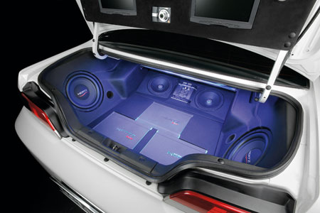Еще для оформления багажного отсека применили и боксы, имеющие небольшой объем. При этом для подключения нескольких каналов применили усилки, благодаря которым поддерживается работа всей имеющейся полосы. Что касается излучателей, от которых поступают высокие частоты, то их располагают также в крышке, вступающей в состав багажника. И такая вариация позволила достичь эффектных результатов.
