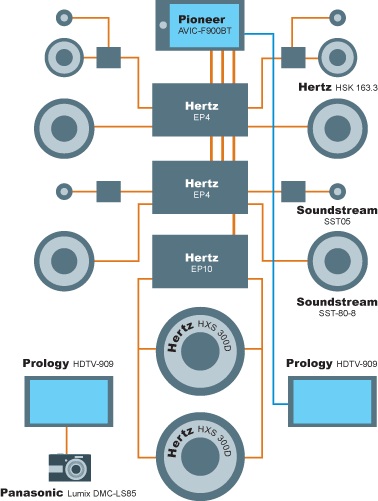 Как только было получено приемлемое оформление, передвижение стало соответствующим, стали заботиться о звучании. Транспорт был укомплектован качественным головным оборудованием, которое принадлежит Пионеру. Устройство оснащено качественной навигационной системой, а также Блютузом. Но более достойных компонентов в системе нет. Изначально мастера не захотели демонтировать голову, а вот в отношении навигации планировали корректировку, которую бы сделали на российский манер. Произвели запуск. В остальных аспектах планировали провести полную корректировку, дабы получить действительно достойное звучание. И стоящие советы позволили создать достойную акустическую систему.