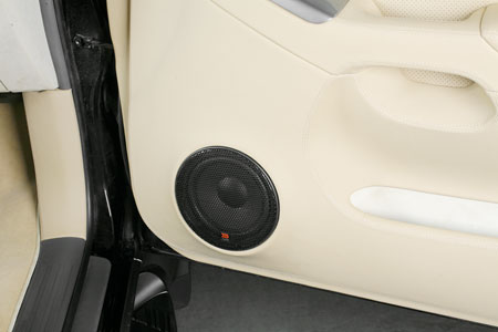 В центральную область были помещены излучатели Hertz HCX 100, относящиеся к коаксиальному типу. Для тыловых головок были специально подготовлены подиумы, часть которых была размещена непосредственно в обивке дверной конструкции. При этом огромные объемы для их нормального функционирования не потребовались, поскольку излучение направлено непосредственно в центральную часть.
