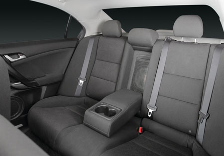Корпус под саб был расположен между спинками сидений. Туда же вошел и диффузор,