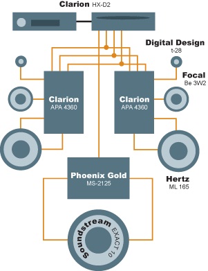 формирования фронта Audison с шестью каналами. Также присутствовал и отдельный
