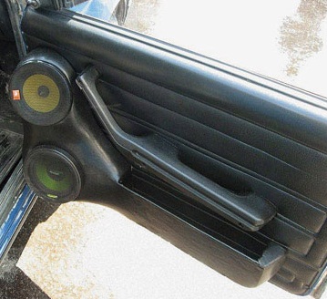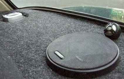 переднего стекла сбоку, а другие динамики – в дверных подиумах. Повозились с
