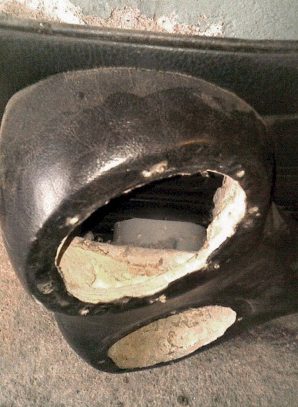 затем чулок, 1-ый слой – эпоксидная смола с наполнителем из серебрянки 2-ым