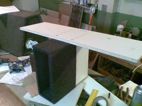 акустикой. Далее закрепили верхнюю часть устройства. Переднюю часть короба