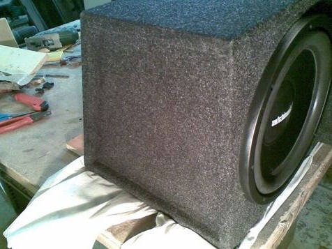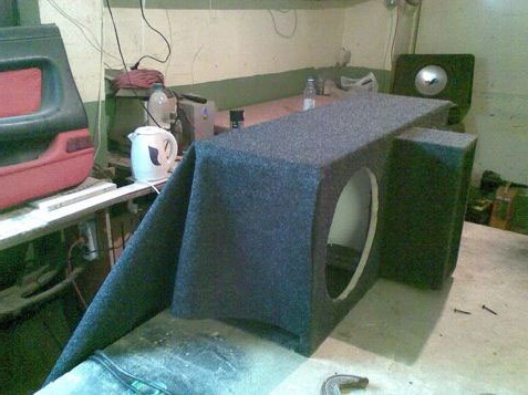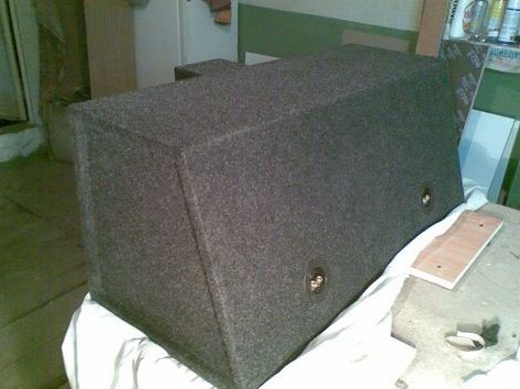 проклейке элементов смолой, сабвуфер полностью обтянули карпетом, для чего