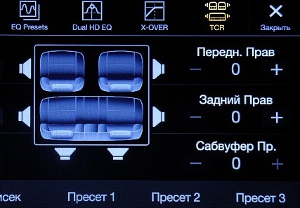 настройка кроссовера, предустановленного и пользовательского эквалайзера,