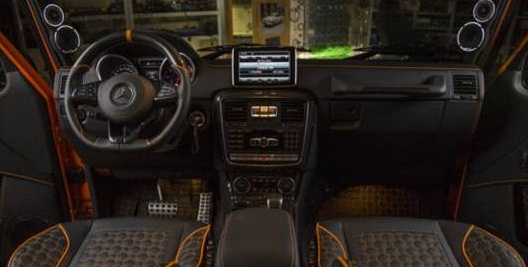 салон вставили несколько элементов и строчек, которые имеют оранжевый оттенок.