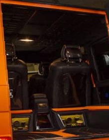 Гелик апельсинового цвета. Автомобиль имел интересное оформление, а также